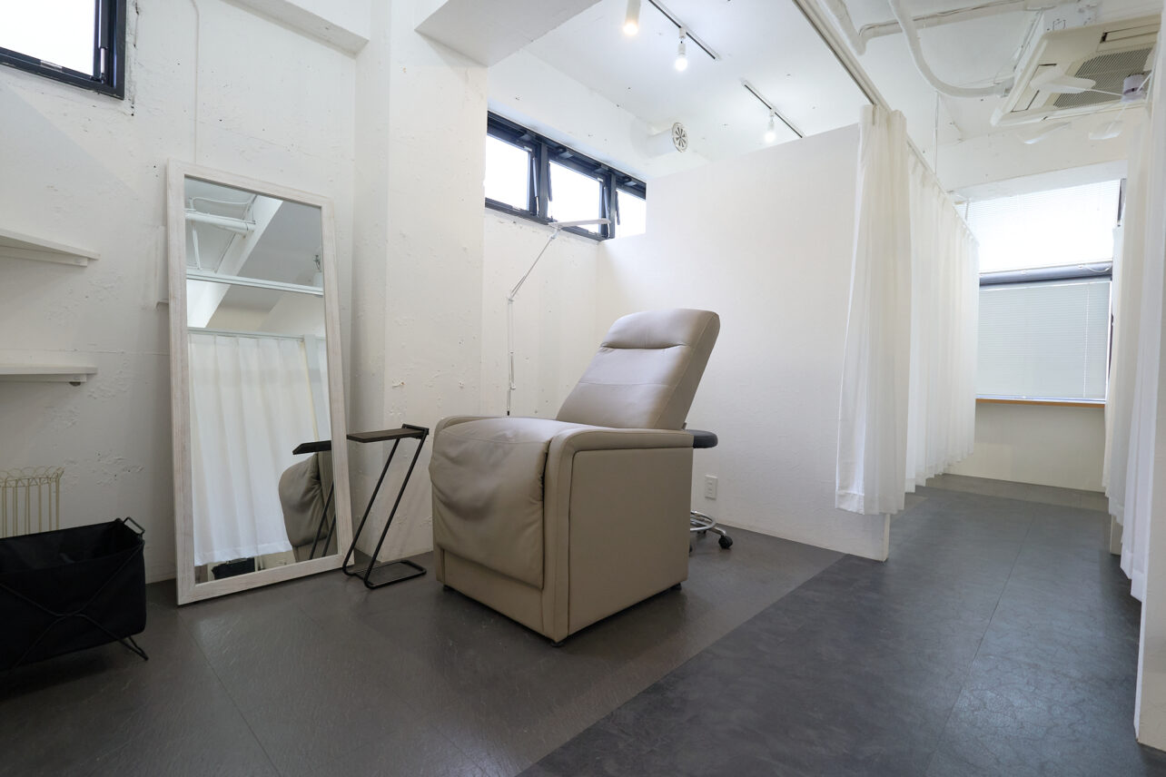 表参道駅徒歩3分、表参道ヒルズの裏側にあるビルでおしゃれな外観と場所で表参道らしいサロンに、オリジナルのサービスや家具を配置できる占有個室をご用意しました。